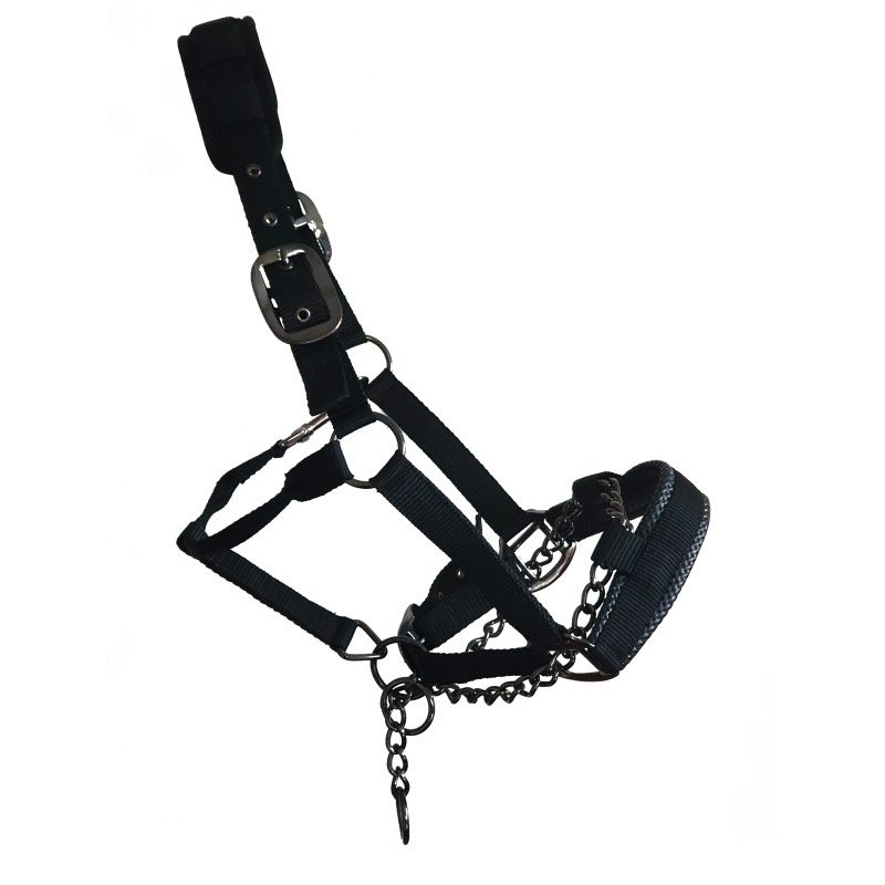 New comfort nylon headcollar with chain designed to safely control the livliest of horses/ponies.