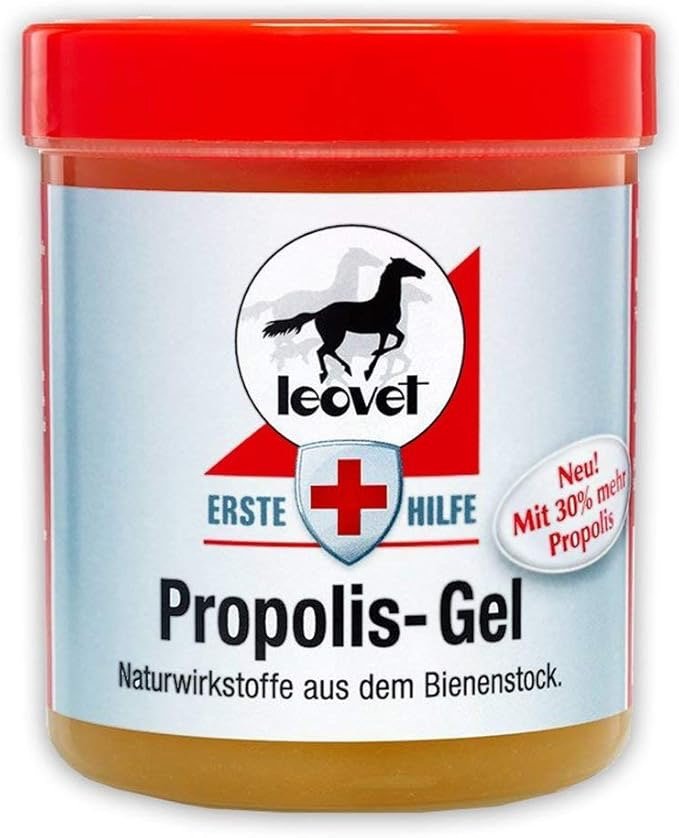Natural active ingredients from the Beehive which contains vitamins, resins and trace elements. The essential oils and resinous components of Propolis have an antibacterial effect and support skin. Propolis Gel naturally helps with minor skin irritations including saddle sores. The natural active ingredients improve the protective function of the skin. Nourishes, soothes, and keeps the skin supple.