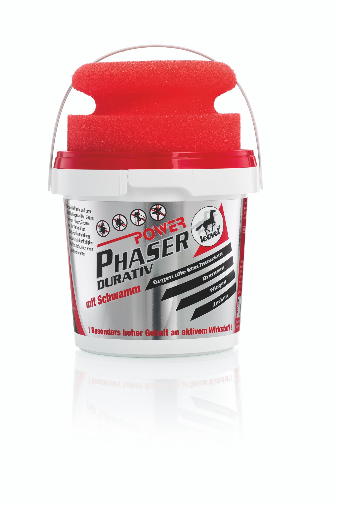 Total protection against nuisance insects such as mosquitoes, horse flies, flies and ticks. An optimised blend of active ingredients guarantees stay-off effect and long-lasting effectiveness for seven hours of protection, even if your horse sweats. Tested and approved by the Swiss Institute for Tropical Medicine. Contains natural fly repelling plants such Cade/juniper oil, Citriodora Oil, Geranium Oil and Pennyroyal Oil. Also contains Cedarwood Oil which helps prevent hair loss and dandruff as well as providing protection against insects. Comes in 3 formulations – Power Phaser spray, Power Phaser Durative Gel and a handy Power Phaser Roll-On. The Gel and the Roll-on are an especially high concentration of active ingredients which protect the horse. They are ideal for sensitive horses and are easy to apply to tender parts of the body such as the head and ears. There is a sponge included with the Durative for application to save soiling the hands.