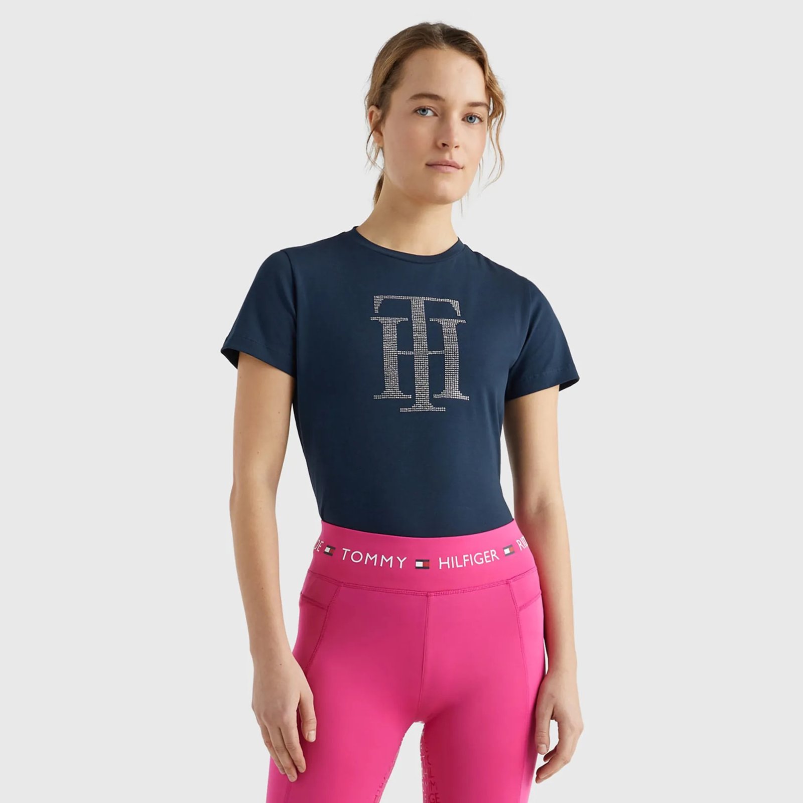 Tommy Hilfiger Equestrian Womens TH Rhinestone T-Shirt-Desert Sky-XXS