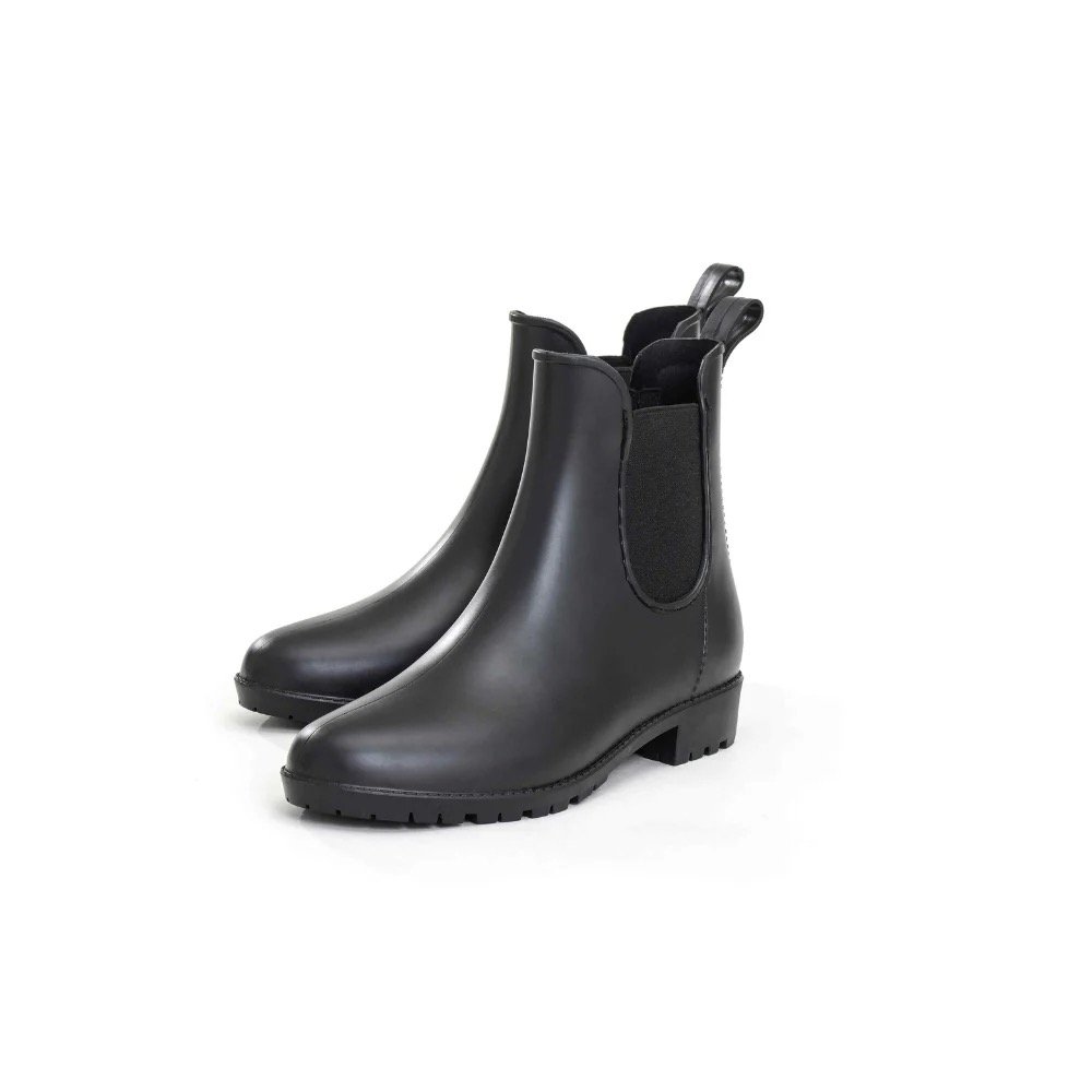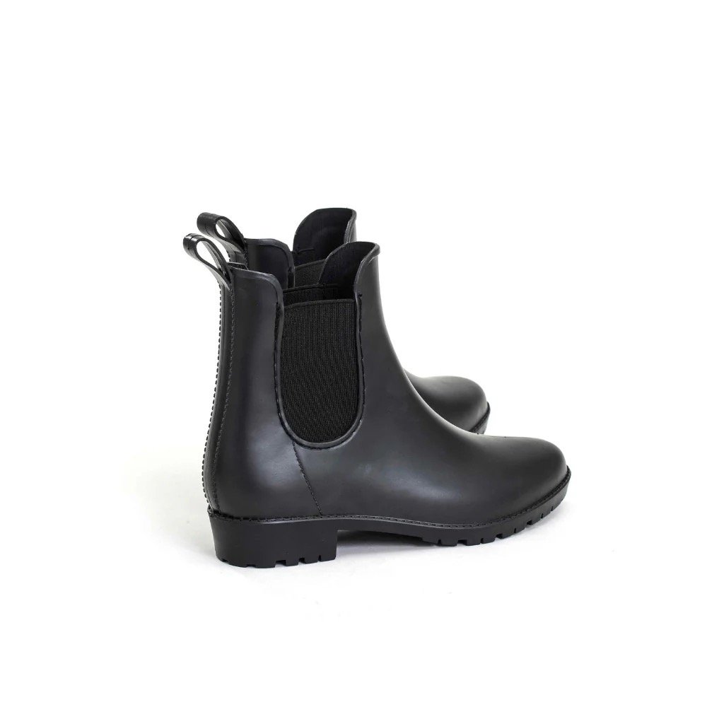 Comfortable waterproof riding boot with elastic inserts and heel pulls for ease of use