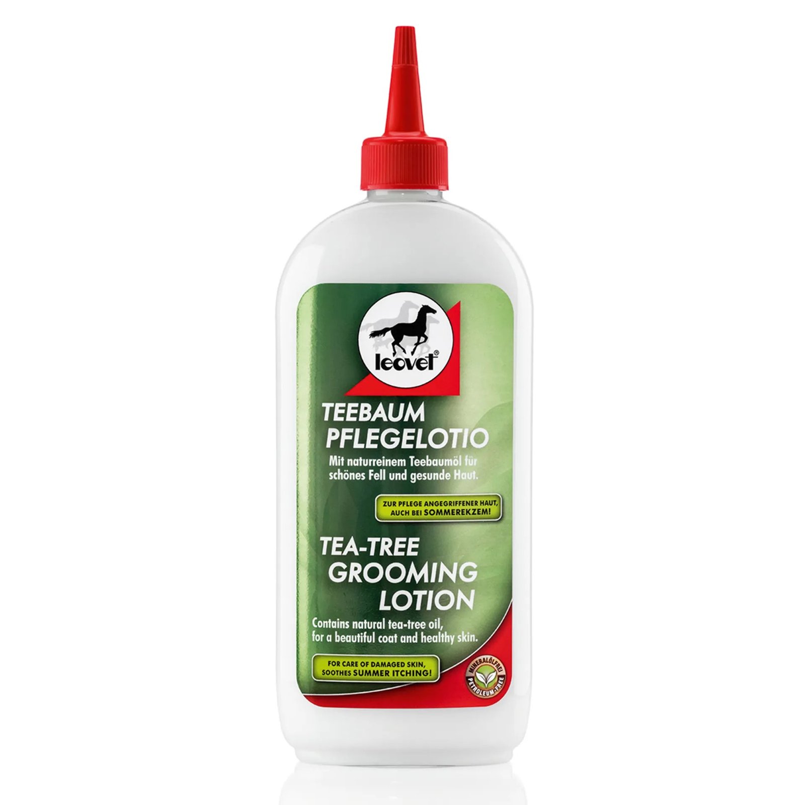 Tea Tree Grooming Lotion cares for irritated and stressed skin. Moisturising lotion contains tea tree oil which penetrates thoroughly cooling irritated skin, reducing redness and scratching. Thanks to the inclusion of Sunflower Oil it soothes summer itching by permeating deeply into the skin where it unfolds it soothing and regenerating effect. Due to the reduced desire to rub the mane and tail the horse can relax and recover. The hair’s growth is activated, and the skin’s natural protective film strengthened.