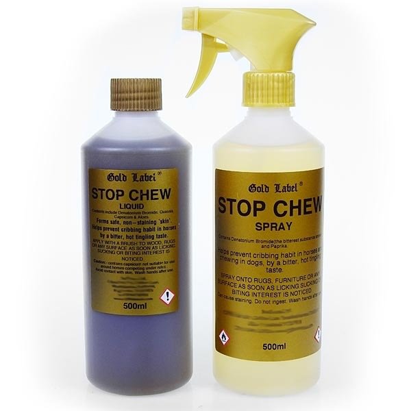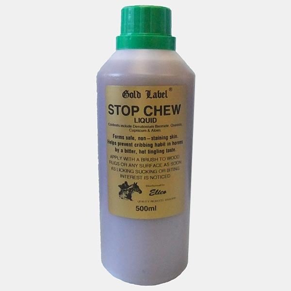 Anti-crib formula containing the bitterest substances known plus an ingredient which causes a tingling sensation when touched.